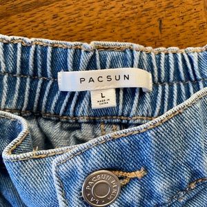 Super dope pants! High rise, baggy, and lots of pockets! Elastic at waist, so can fit a variety of sizes. Also cute with a belt! Minimal wear.