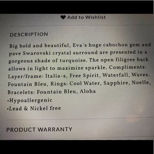 Park Lane EVA size 4 ring. Description in photos from catalog. Never worn.