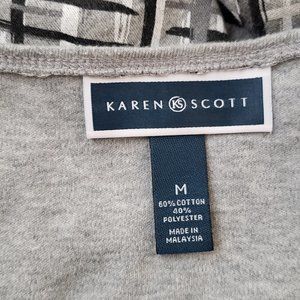 Karen Scott 3/4 Sleeve Grey Patterned Shirt