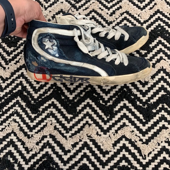 GOLDEN GOOSE High top distressed denim sneakers
