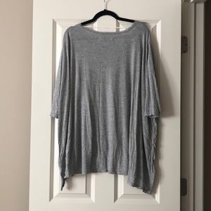 Super fun gray heather poncho t-shirt from FP Beach. Elbow length sleeves and great drapey shape with side vents. Lightweight fabric. One size. NWOT.