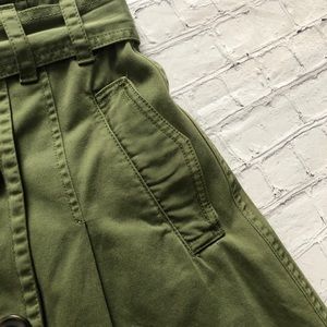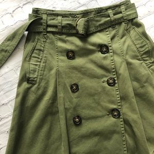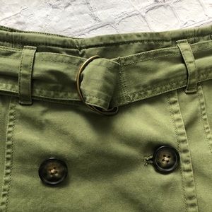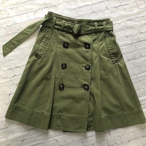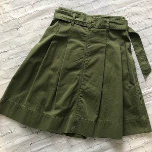 J. Crew Military Style Skirt | Pleated with Belt | Pockets | Double Button | Army / Olive Green | Sturdy Cotton Material | Dress Casual / School Girl / Preppy | Women's Size 2 | Excellent Used Condition - Like New! | Please review photos closely for additional product details. Color may vary slightly in person than on screen.