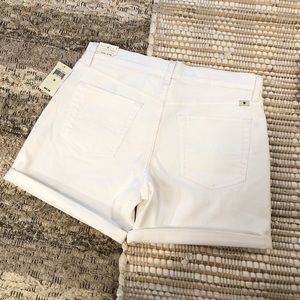 Brand new white Lucky Brand high waisted roll up denim shorts. They have a few little scuffs on them from being in store. Nothing major. Size 28 or 6, waist measures 16.5” across lying flat, hip-20”, inseam-5” as they are rolled up, rise is 10”. 14 199 12