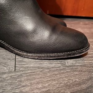 Preowned Chanel riding boots in Black, featuring interlocking CC logo on back of the calf. Simple and elegant! No major scratches, signs of minor wear on the outsole. Wear on sole. One side of box is creased, 2 dust bags included.