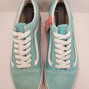 Vans Old Skool (Aqua Haze / True White) 'VN0A38G1VKQ1' Womens Size 6.5 NWB. Condition is "New with defects". Right shoe Suede is a bit darker due to being a display shoe. Not very noticeable when exposed to natural lighting. Other than that they are in perfect condition. Please see all attached pictures for more details. Any additional questions feel free to ask. Thanks for looking!
