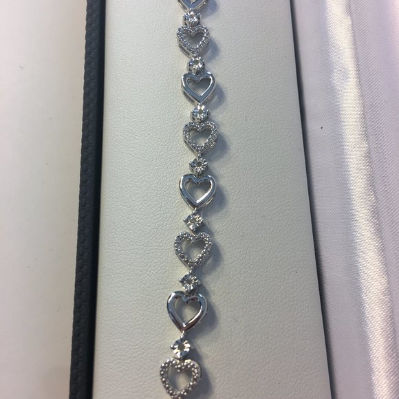 1/10 CT. T.W. Genuine White Diamond Sterling Silver Heart Tennis Bracelet-New With Case!