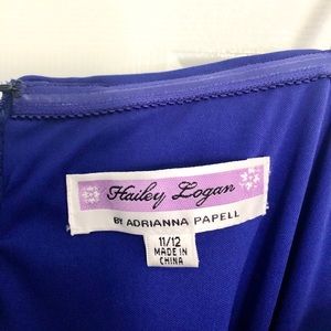 Practically new, very gently used royal blue-colored, short sequin formal dress by Hailey Logan/Adrianna Papell in Size 11/12. Includes a matching sash to wrap around the waist as depicted in the third photo. Open to offers! Thanks for looking!