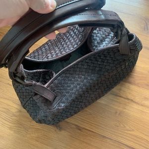 Valentina leather bag. Resembles Bottega Veneta style. Beautiful brown soft leather made in Italy. Comes with long strap as well as two handle straps. Can be worn as cross body or hand carried. Worn twice. Great condition.