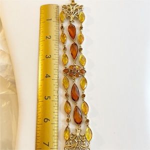 Art Nouveau vibe- Gorgeous Fold-over Clasp. Amber and Citrine colored stones. Slight wear- beautiful quality piece. Prom