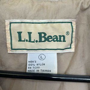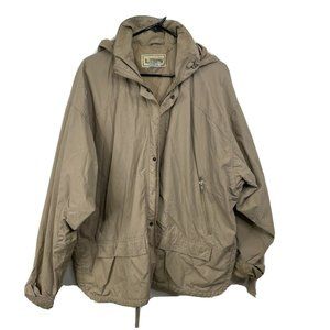 Up for sale is Vtg LL Bean Rain Coat Men’s Hooded Khaki Beige Button Zip Windbreaker
