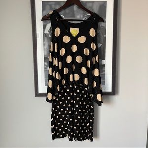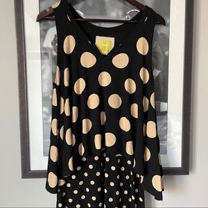 Anthropologie Maeve Layered Davina Dress, Black & Cream Polka Dot, Sleeveless, Size Medium M, New Without Tags
