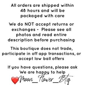 New to Poshmark? Use invite code MOON_FLOWER_BTQ to sign up for a new account and get $10 off of your purchase