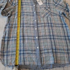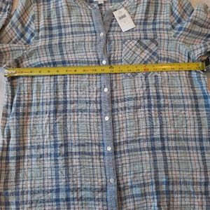 J.Jill plaid Gingham soft cotton button front tunic shirt. Brand new with tag. Size XL. Please see the measurements in photos provided. Purchased from a sample sale so there is a line thru tag as shown in picture.