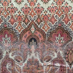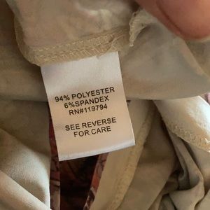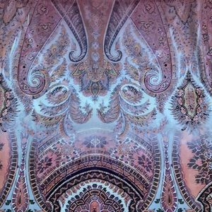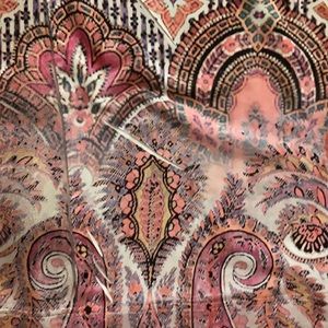 One world pink v-neck print top with sequins. There is a string across the top between the shoulders, this can be cut.