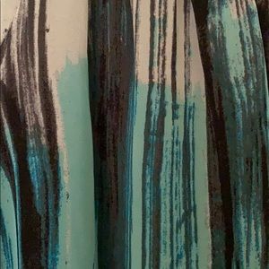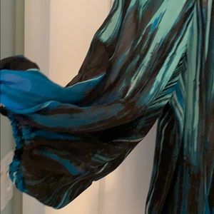 Stunning on trend Vince camuto top. Features sheer lined material in a blue green watercolor. Elastic bottom and sleeves. Can be worn blousy over jeans or pulled down for a longer look. Top has elastic at neck so gorgeous off the shoulder as well!! You choose!