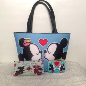 Cute shoulder bag with Mickey and Minnie light blue, comes with a wallet and coin purse. It can be worn with a cute outfit. If you have any questions feel free to ask. Thank you