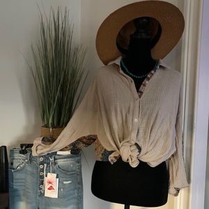 Mystree Boutique Boho Top- with floral accents- L
