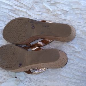 Beautiful gold foil Coach wedges with cork covered heels and gold metal bows. Size 7.5B