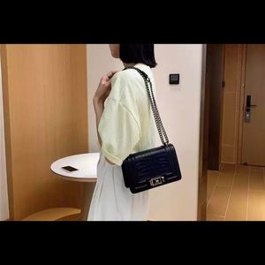 Its a metalic looking high fashioned bag