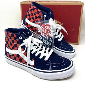 VANS Sk8-Hi Pro Checkerboard Navy Red Suede Canvas Shoes Womens Size VN000VHGW7E