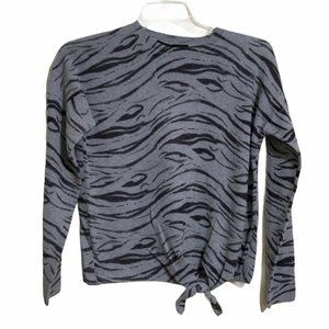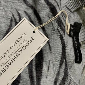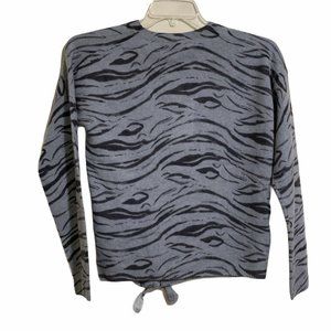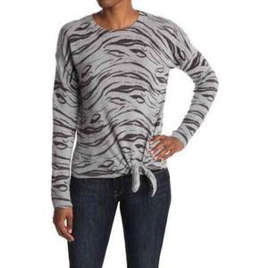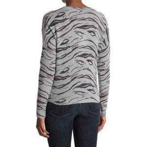 360 Cashmere Tie Front Pullover Cashmere Sweater Blue Gray Animal Print