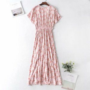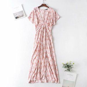 Boho Pink vneck butterfly sleeve Floral Maxi Dress