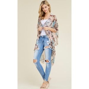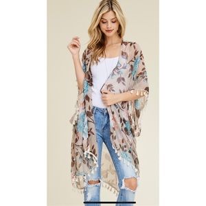 Khaki Floral Tassel Cardigan