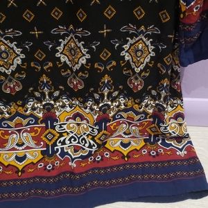 This beautiful print dress was one of the very few dresses I kept in my closet throughout high school! The fabric features a gorgeous design, and has retained some softness throughout years of being washed. The dress unfortunately does not come with a tag that states what it is made of.