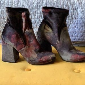 VINTAGE velvet style booties. Size 7. One tiny hole on side as pictured but cannot be seen unless you are looking for it