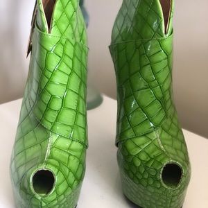 SHOE ENVY Green Peep Toe Platforms 38 Super Funky