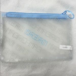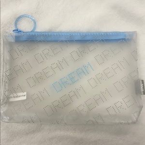 Ipsy January 2021 glam bag. Clear vinyl makeup bag with “Dream” graphic print all over. Blue zipper top with ring zipper pull. New, never used. Measurements upon request
