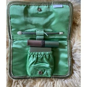 Two sided applicator brush in metallic green to match case