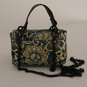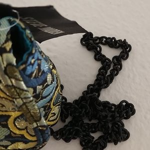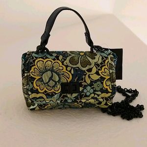 Beautiful Small Steve Madden Handbag, Shiny gold floral accent fabric so precious and perfect for any party ocasion, or to carry light and go bright.
