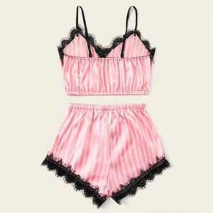 FREE Shipping! Brand New Boutique Item, Retro, Pin Up Vintage Look, Silky Satin Feel Sexy PJs Lounge Sleep Set, Cropped bralette top, high waist cheeky shorts elastic waist, Measurements in photos