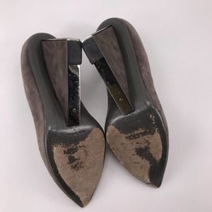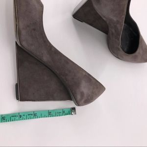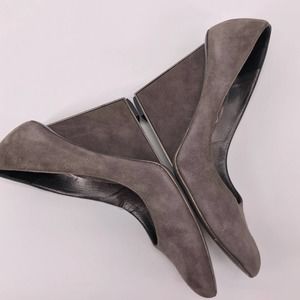 Halston Grey Suede Rectangular Wedge Pumps Sz 6
