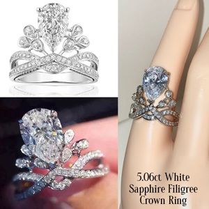 Fine 5ct White Sapphire Paved Filigree Crown Ring