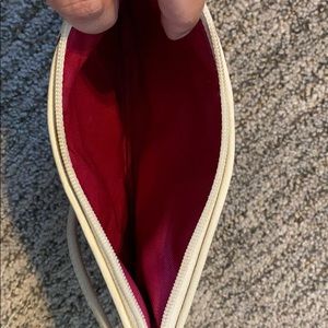 Cranberry, cream, and pink wristlet with Cs
