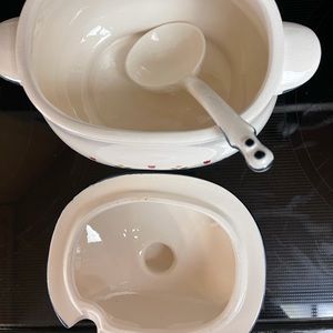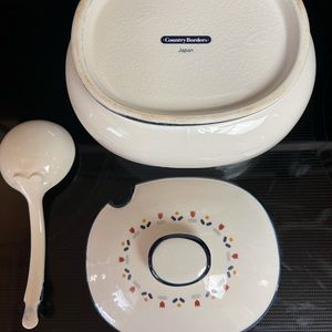 Ceramic Vintage Gravy Bowl with Spoon, no cracks, no chips, like new