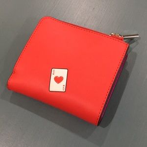 This is part of the Lucky Draw Collection. This wallet is perfect for a small bag or crossbody. Material: smooth leather / 2 way spade jaquard