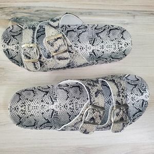 NEW Black and White Crystal Buckle Slide Sandals