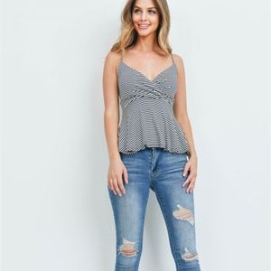 Ivory & Black Pin Stripe Baby Doll top