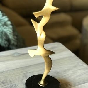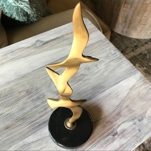 Gatco Vintage Mid-century Modern MCM Heirloom Family Estate Solid Brass Seagulls In Flight set on Black Marble Base measures 13” tall.