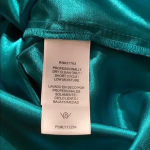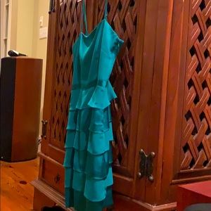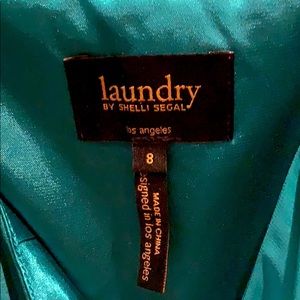 Rich colored turquoise/green Laundry adjustable spaghetti strap dress. Pristine condition, never worn. Outside is satin/chiffon with luxurious satin lining. See photos for materials.