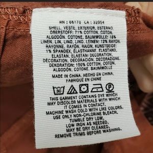 - 71% Cotton, 16% linen, 12% rayon, 1% spandex