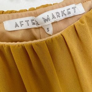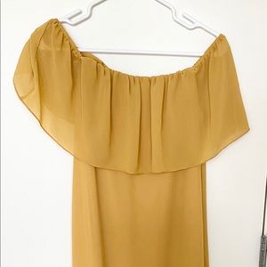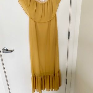 After Market Golden Ruffle Off Shoulder Maxi Dress. Golden yellow/Mustard color.