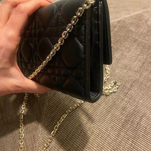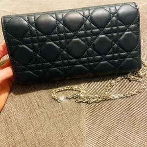 Gorgeous Classic Cannage Lady Dior Lambskin Black Chain Clutch/wallet