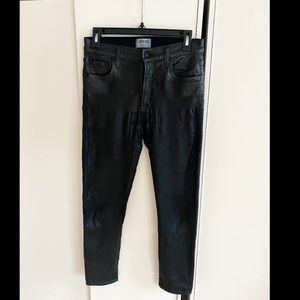 High rise skinny coated jeans. Super sexy and stretchy. The crotch has ruches which you can see in the above picture, priced accordingly. Measurements available upon request!