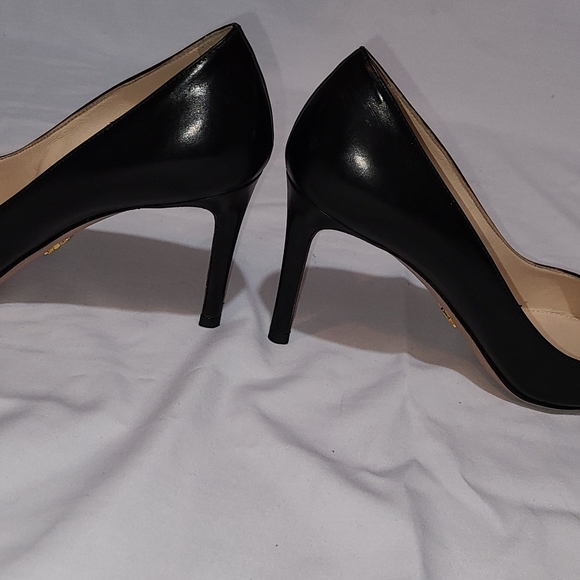 These leather pumps are characterized by their sole printed with Saffiano effect and decorated with the metal lettering logo.