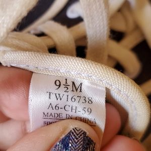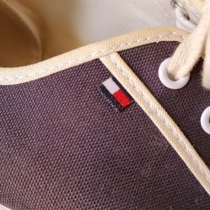 Mens Tommy Hilfiger sneakers. Size 9 1/2. In good condition but need a bit of cleaning. I am afraid to touch them up. Will need new laces as these appear to have a rust stain. Smoke-free home.