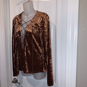 Brown Velvet Lace-Up Front Top